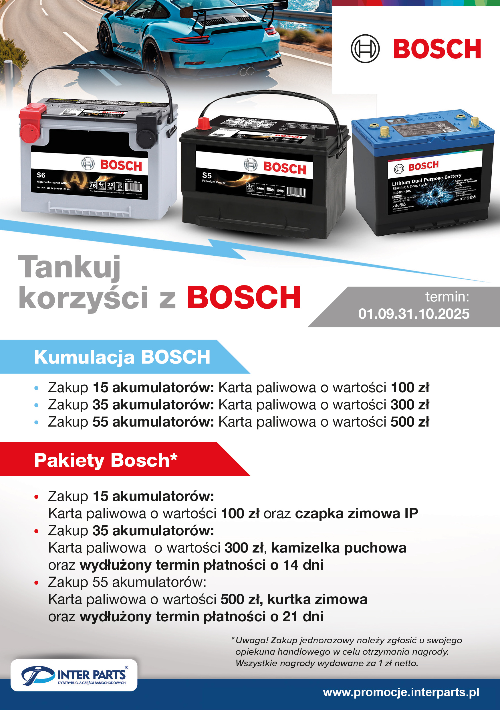 • Zakup 55 akumulatorów → karta paliwowa 500 zł + kurtka zimowa + wydłużony termin płatności o 21 dni